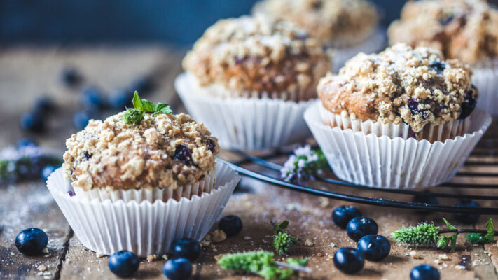 Borovničevi kolački z ovčjim jogurtom in ovsenim drobljencem